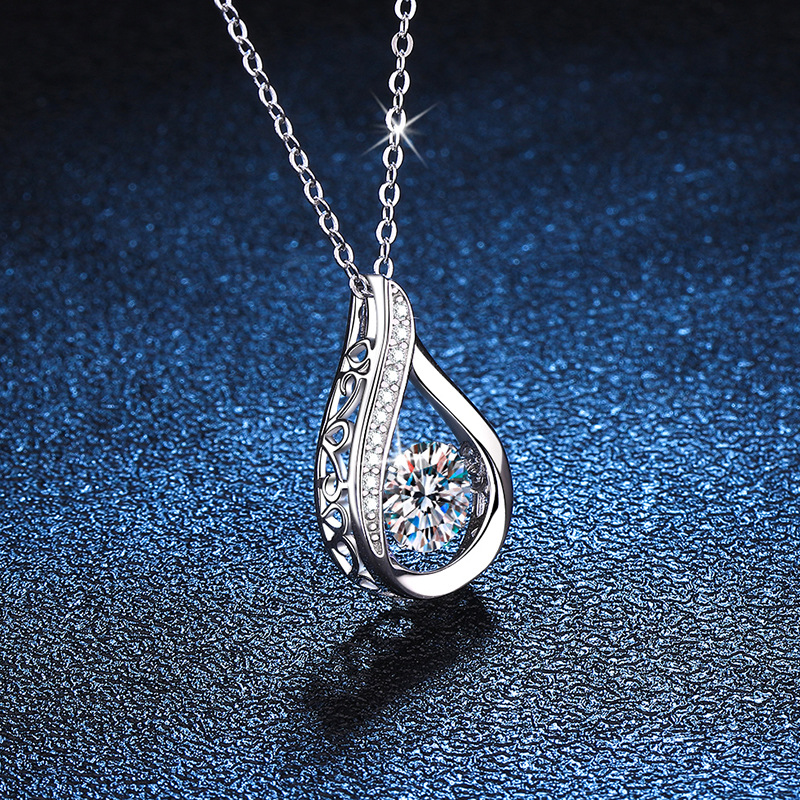 Product information:Material: silverTreatment process: electroplatingStyle: Women'sShape: water dropColor: 6.5mm high carbon stone, 1 carat moxanite belt certificatePacking list:Necklace * 1