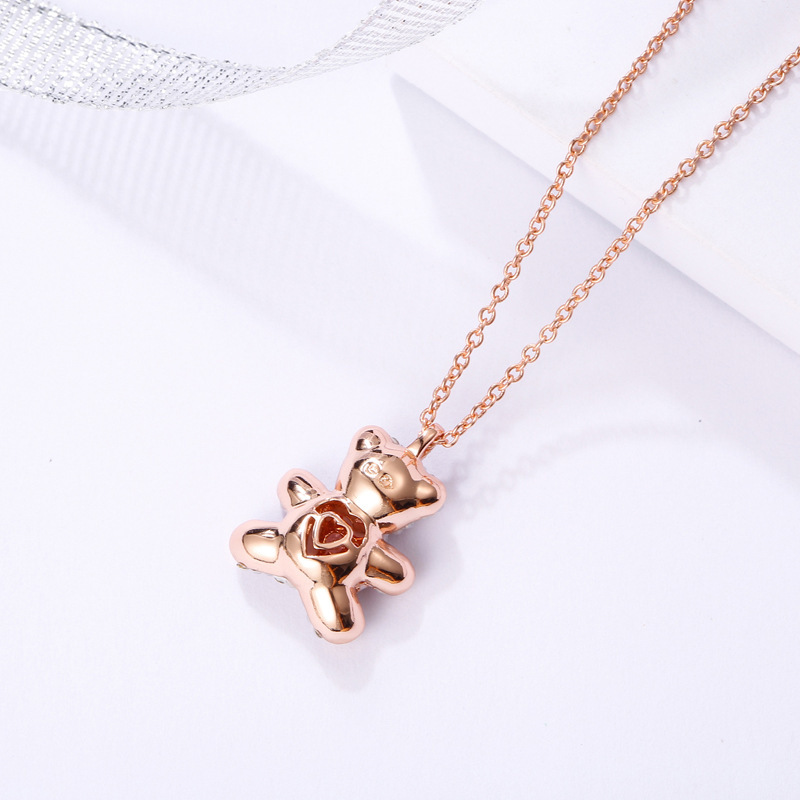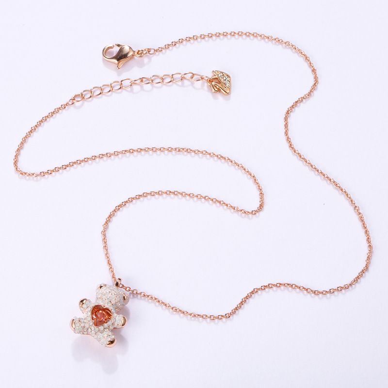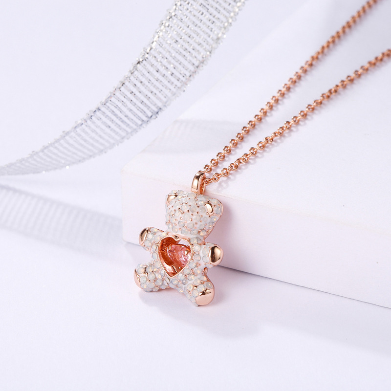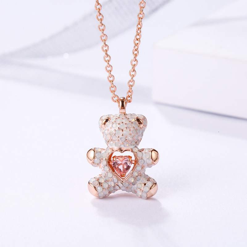 Pink Diamond Teddy Smart White Bear Necklace Flashing Heart Shape