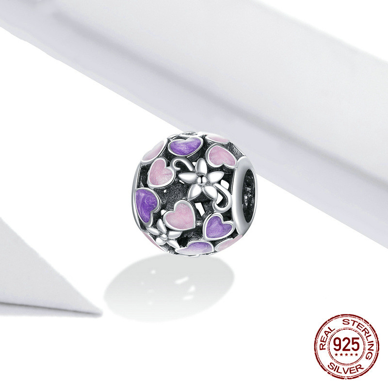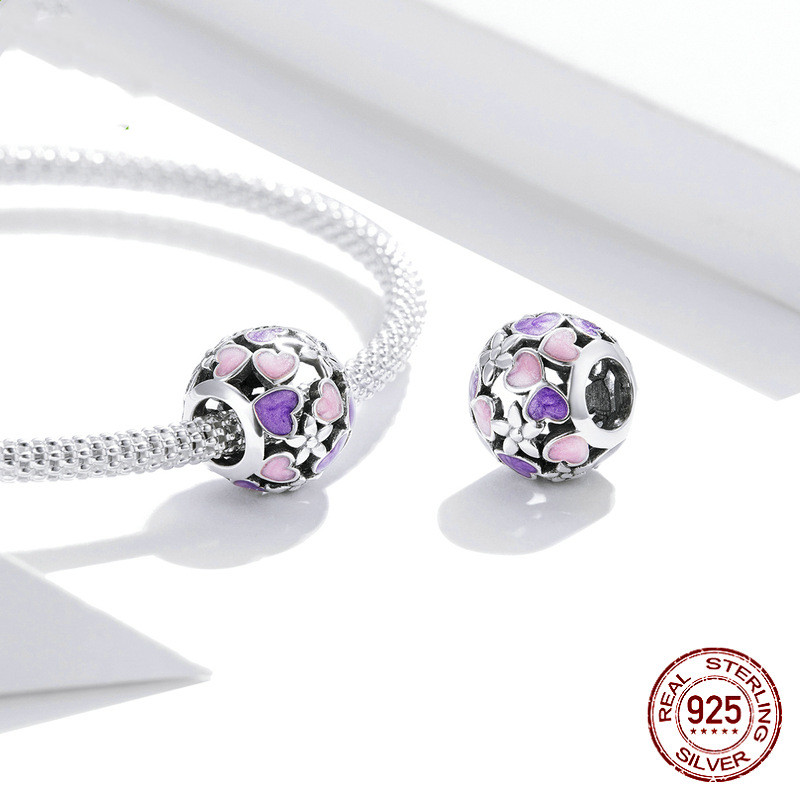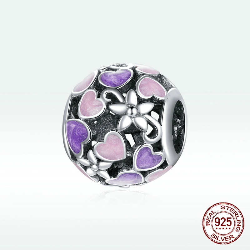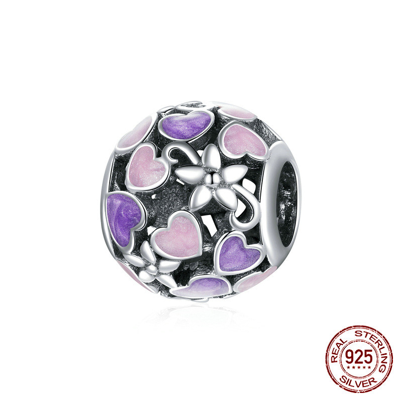 Dripping Purple Love Heart Hollow 925 Silver Beads