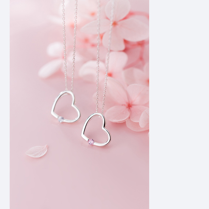 Color: S925 Silver Necklace-White Diamond, S925 Silver Necklace-Pink Diamond