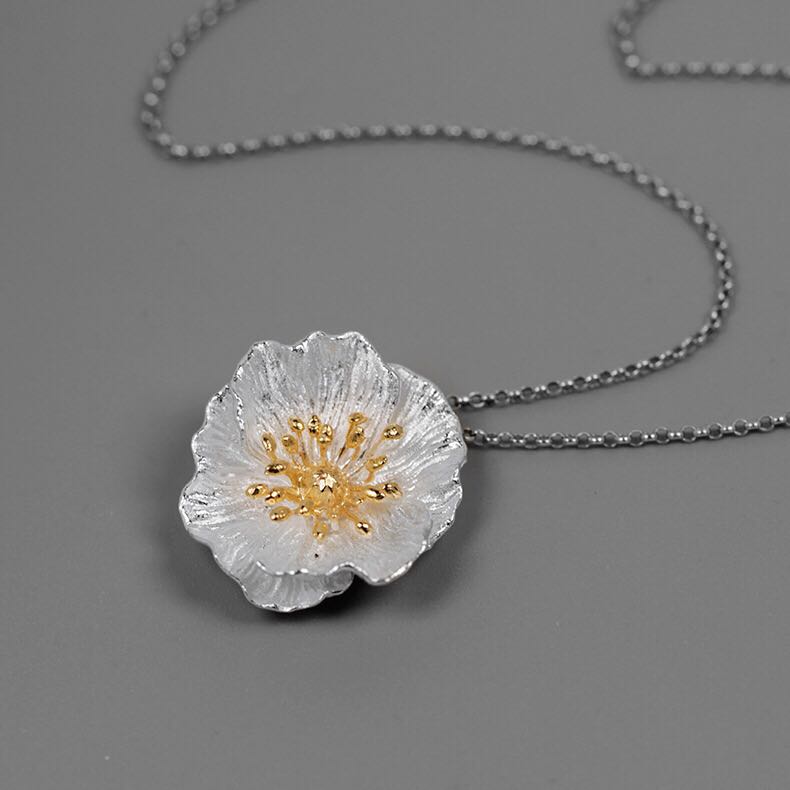 Chain material: silverMetal material: 925 silverPattern: plant flowersStyle: original designColor classification: pendant with 41+5CM adjustment chainChain style: cross chain