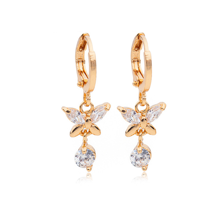 Earrings butterfly gold crystal women