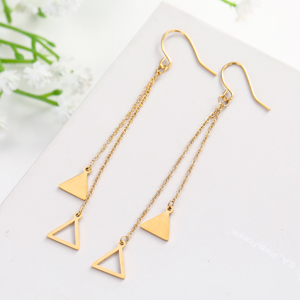 Product information:Treatment Process: ElectroplatingColor: white, goldApplicable people: womenMaterial: Stainless steelShape: GeometricPopular elements: TriangleStyle: Elegant