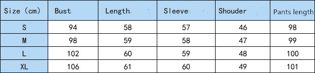 | size | bust | length | sleeve | Shoulder width | Pants length |