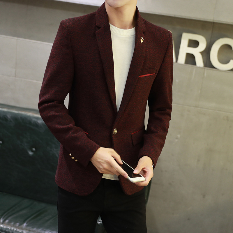 Style F: thick burgundy woolen cloth,