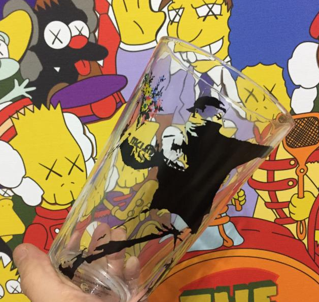 Banksy throwing flower boys street art industrial glass glass beer mugTransparent glass, winter bubble milk, summer and small beer to see the ball, are very good oh!! The spotEach one comes in a kraft paper box15 cm high