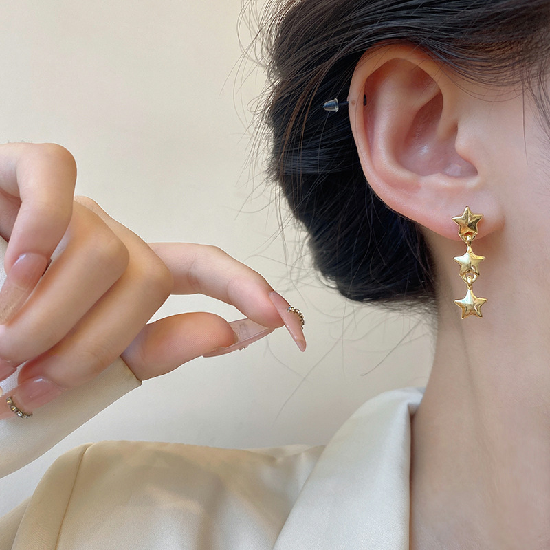 Design Geometric Five-pointed Star Love Heart Stud Earrings Simple