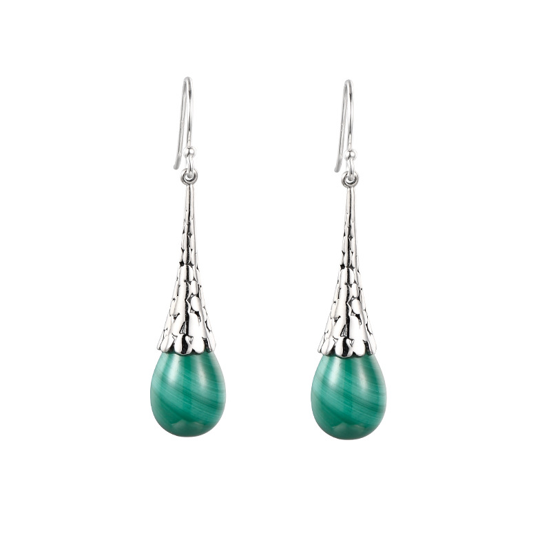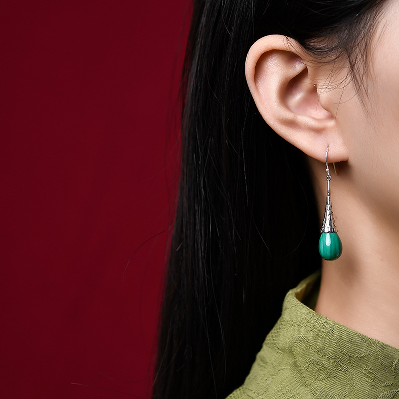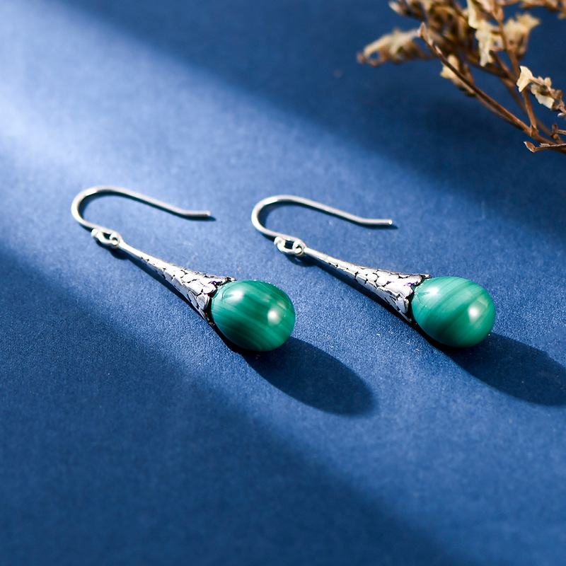 Product information:Treatment Process: inlaid gem Applicable population: Female Material: Silver, malachite Shape: drop shape Size: 10 * 46MM