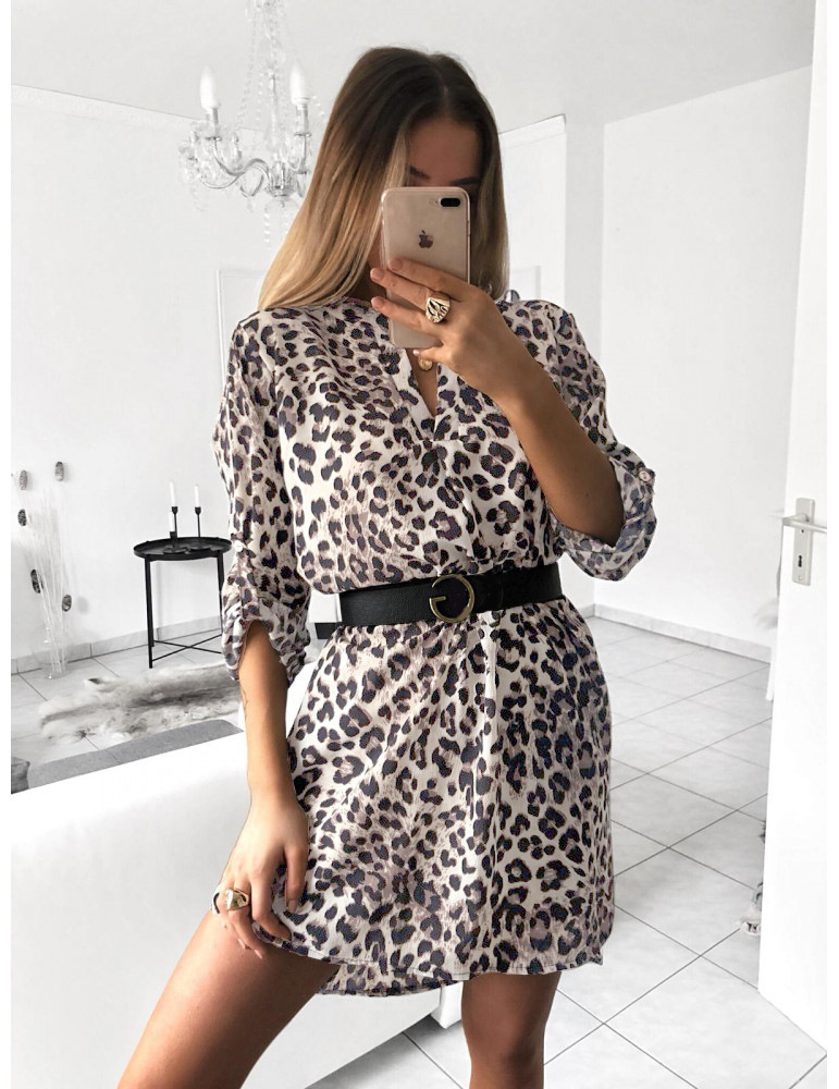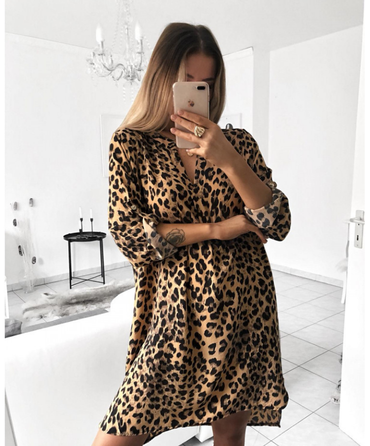 V-neck long-sleeved snake print shirt dress without belt