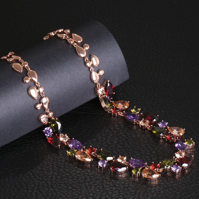 Style: fashion OLMaterial: CopperType: necklaceStyle: Women'sShape: teardrop shapeColor: rose gold colored diamonds, white gold colored diamondsPopular elements: geometry