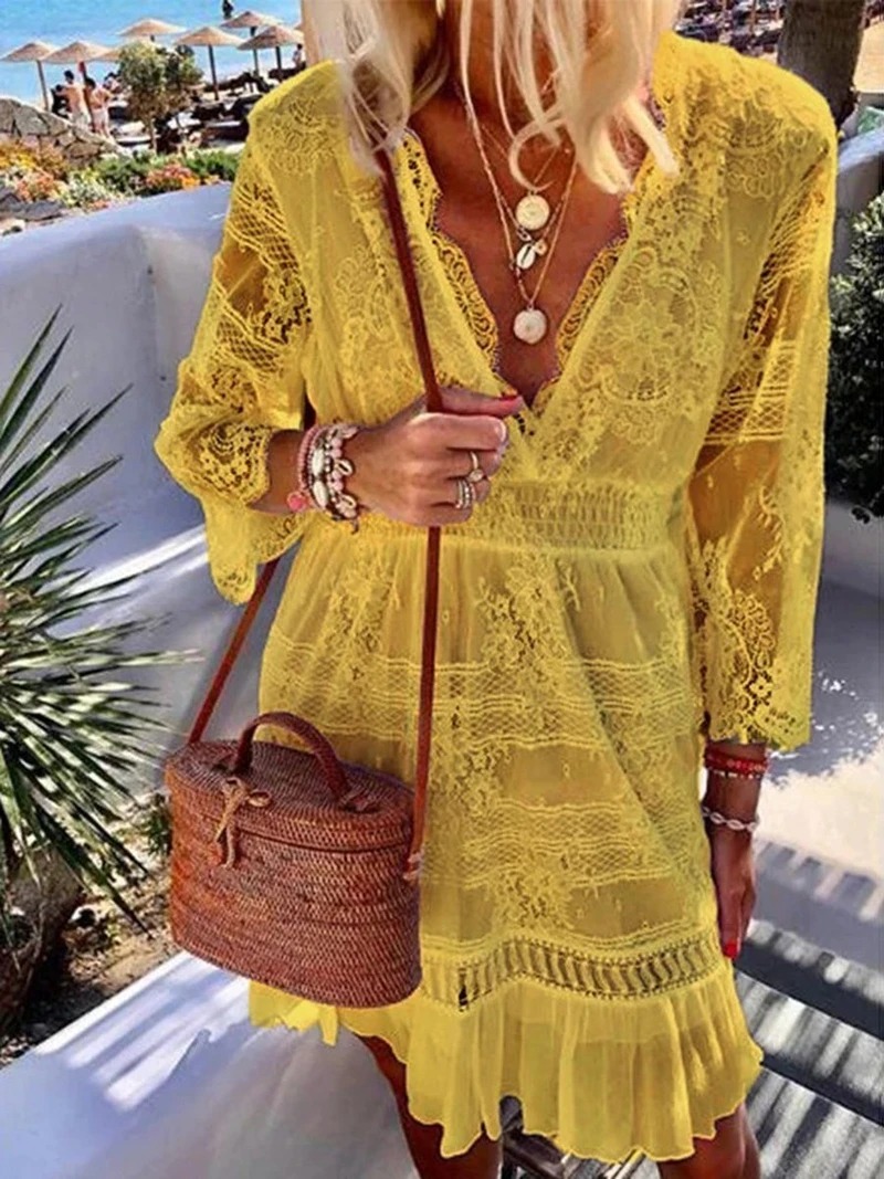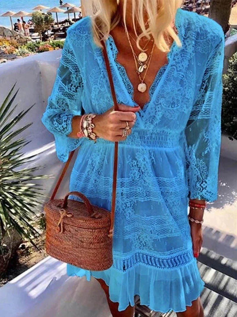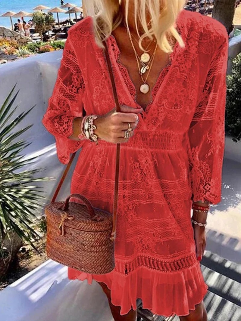 TAINA - Superleuke zomerjurk met kant en V-hals