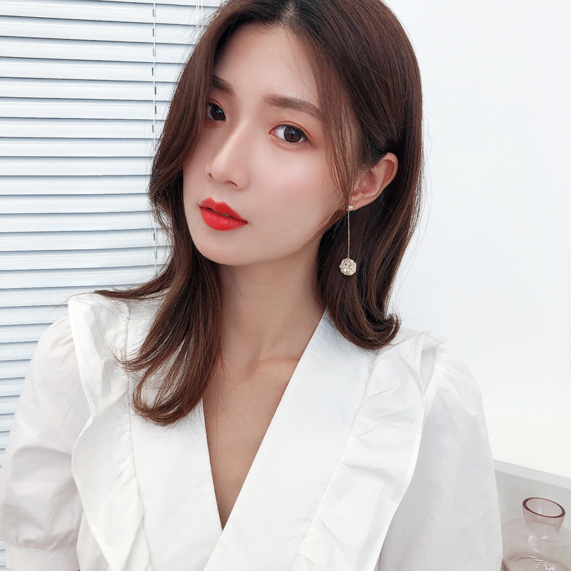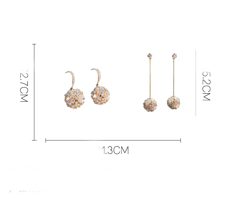 Material: CopperStyle: Women'sShape: sphericalTreatment process: electroplatingInlay material: zirconColor: ear hook type, tassel ear pin type