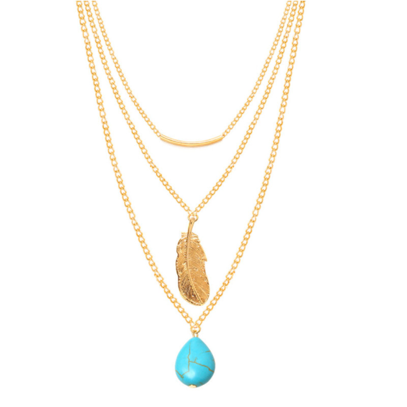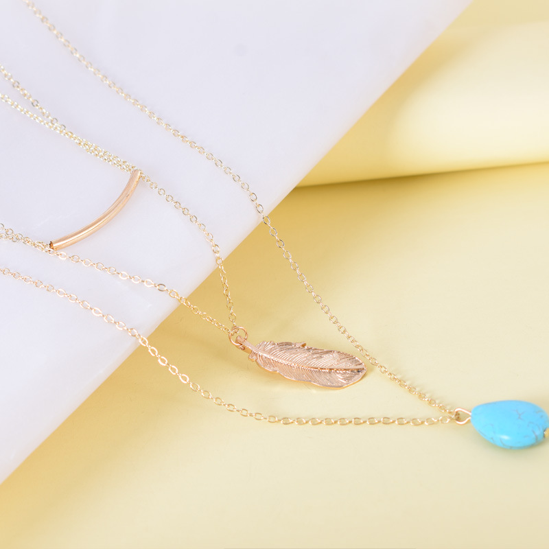 Style: European and AmericanMaterial: alloyTreatment process: electroplatingType: NecklaceStyle: Female styleShape: geometrySize: Chain length 44CM 60CM 70CM Leaf pendant 3.5cm pine 2CM