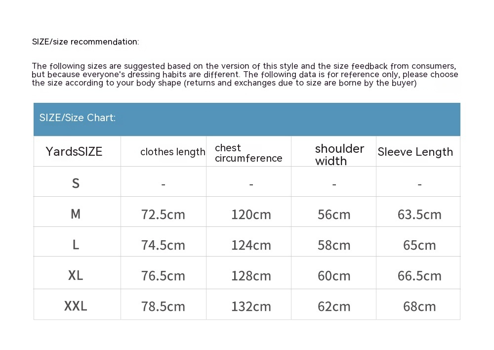 1. Asian sizes are 1 to 2 sizes smaller than European and American people. Choose the larger size if your size between two sizes. Please allow 2-3cm differences due to manual measurement. 2. Please check the size chart carefully before you buy the item, if you don't know how to choose size, please contact our customer service. 3.As you know, the different computers display colors differently, the color of the actual item may vary slightly from the following images.