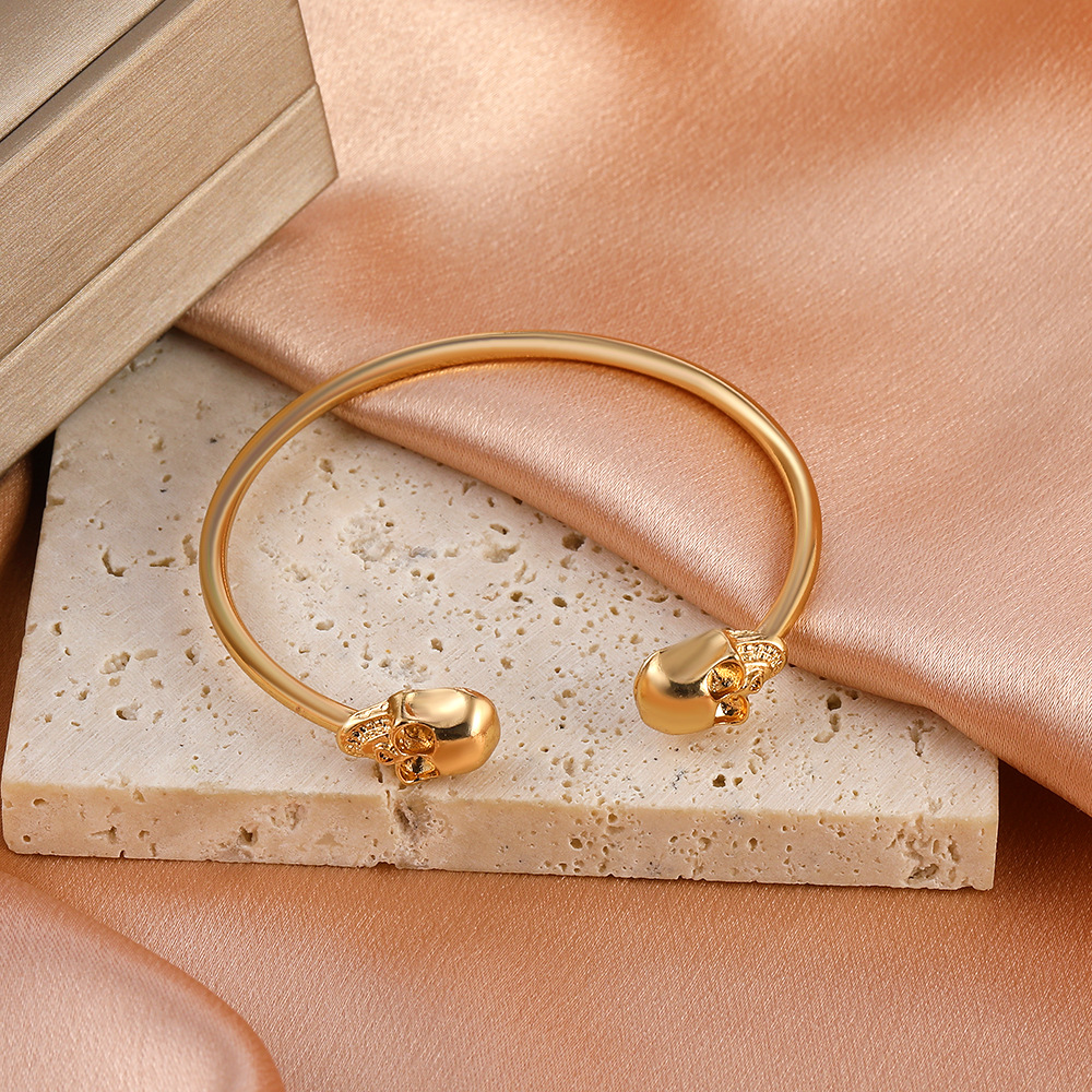 Product information:Material: AlloyStyle: Women'sStyle: SkullTreatment process: electroplatingColor: 01KC gold, 02 ancient silver, 03 blackPacking list:Alloy bracelet X1