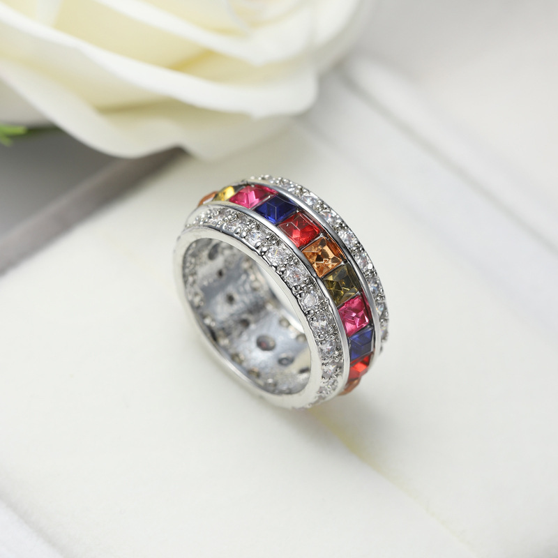 Type: RingStyle: UnisexInlay material: white gold/K white gold inlaid with gemsElectroplating color: platinumMaterial: Copper + ZirconZircon color: light sea blue