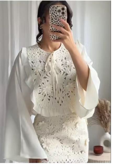 Product information:Color: bell sleeve top, skirt, one setSize: S,M,LStyle type: Street hipsterSkirt length: short skirtFabric name: CottonSleeve length: long sleeveStyle: European and American style