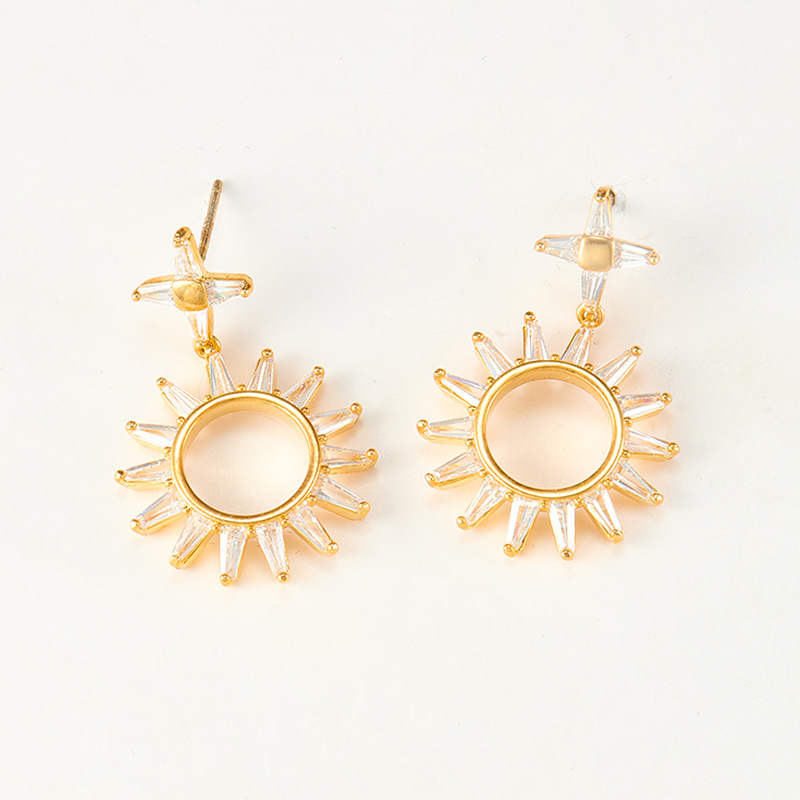 Product information:Material: Copper + ZirconStyle: Europe and AmericaStyle: Women'sModeling: GeometryInlay material: zirconPopular element: metalPackaging Information:Earring x1