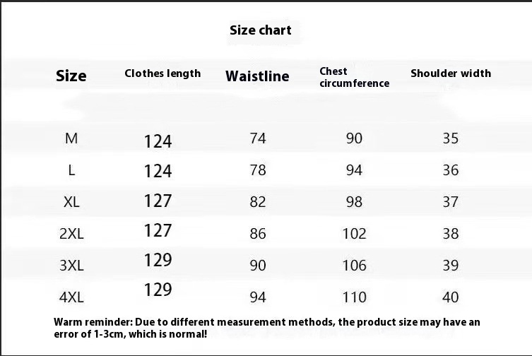 Size: M within 100kg, L 50.00 kg-55.00 kg, XL 55.00 kg-60.00 kg, 2XL 60.00 kg-65.00 kg, 3XL 65.00 kg-70.00 kg, 4XL 70.00 kg-75.00 kg