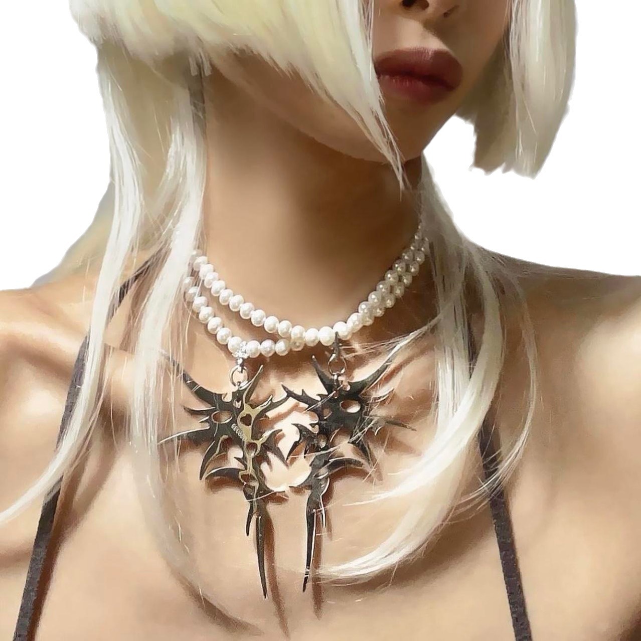 Retro Dark Titanium Steel Thorn Pendant High-grade Female Niche Pearl Necklace