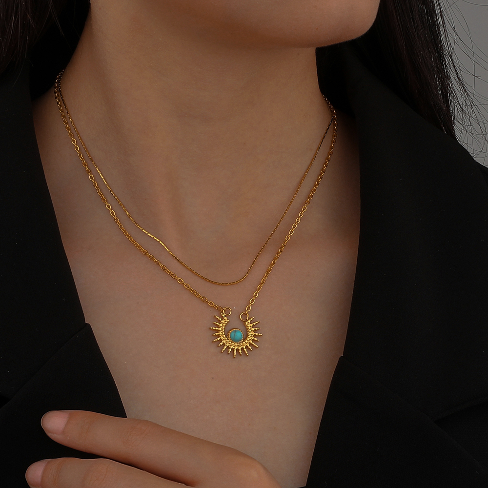 European And American Style Sun Blue Orb Pendant Popular Pendant Necklace