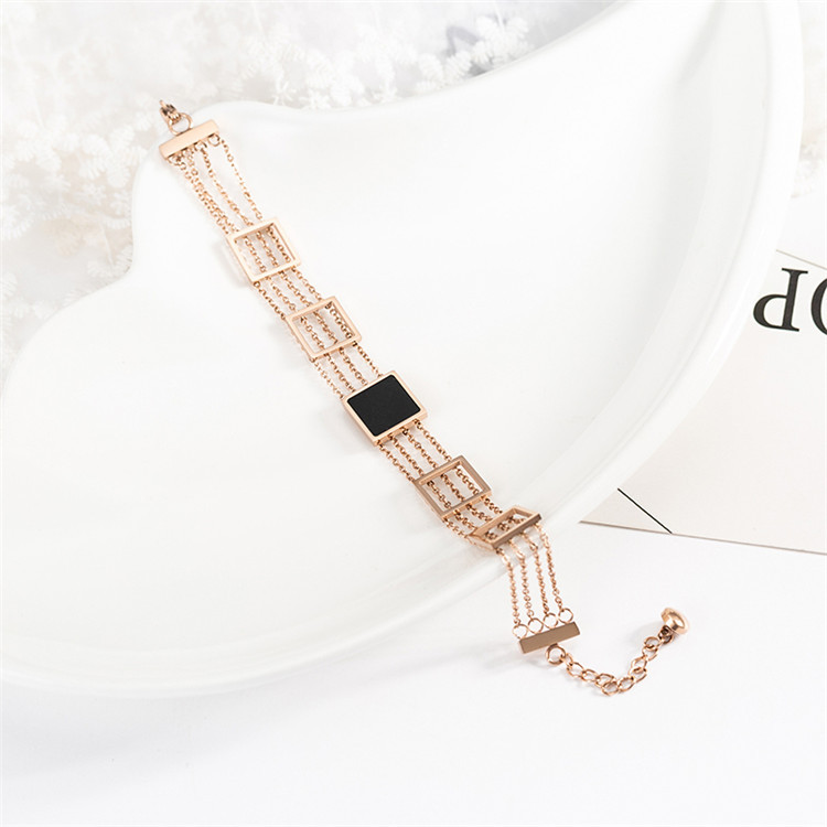 Multi Layer Block Titanium Steel Rose Gold Bracelet