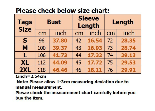 2. Please check the size chart carefully before you buy the item, if you don't know how to choose size, please contact our customer service.