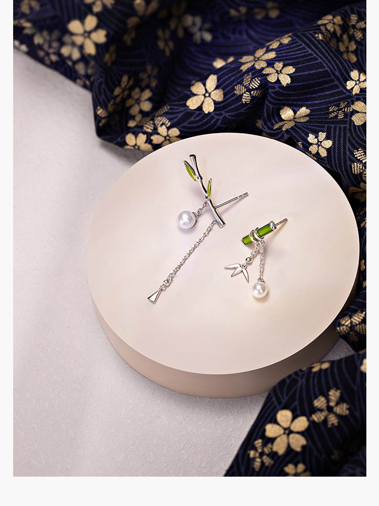 Material: Alloy / silver plating / gold platingApplicable gender: FemaleProduct Name: Bamboo child EarringsStyle: freshProcess: electroplating, cold enamelWeight: 1.5gMaterial: silver plated copper, white pearl