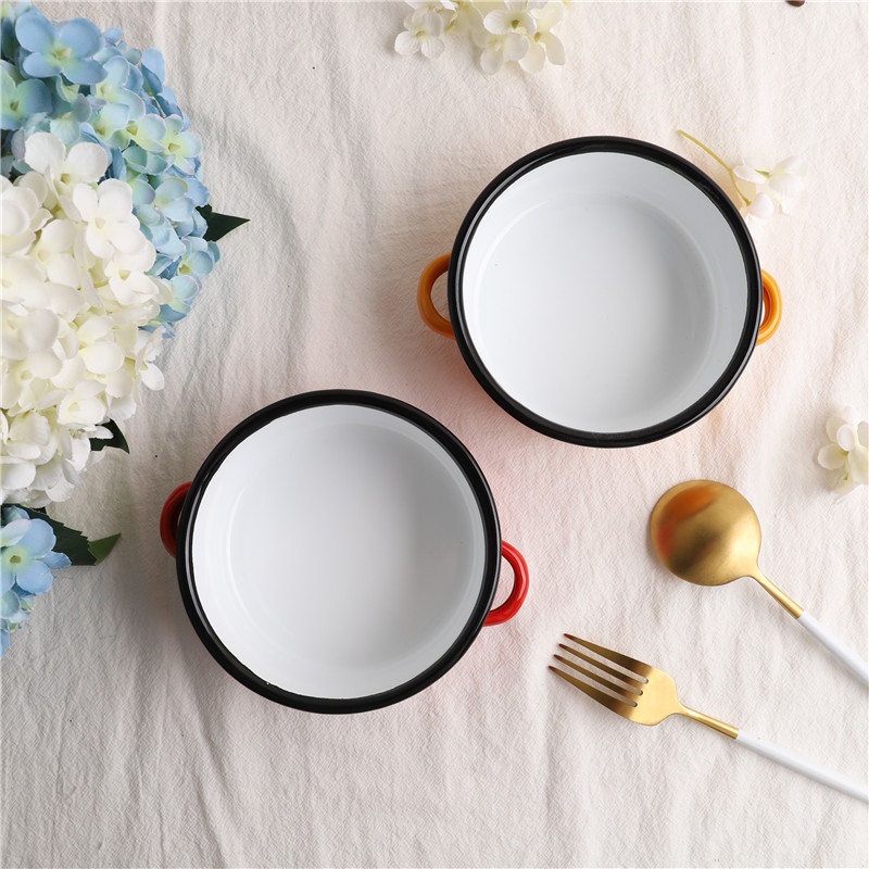 Thicken Colored Double Ear Enamel Bowl Tableware