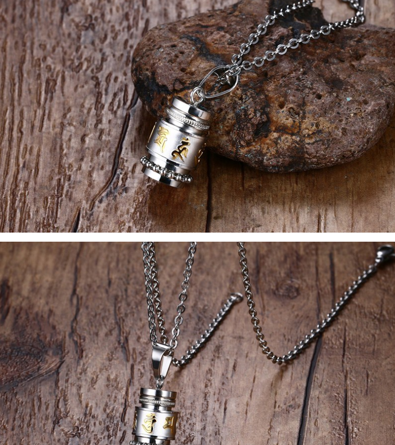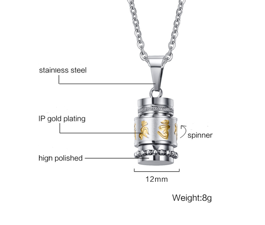 Trend Titanium Steel Rotating Tube Six-Word Mantra Pendant Religious Jewelry
