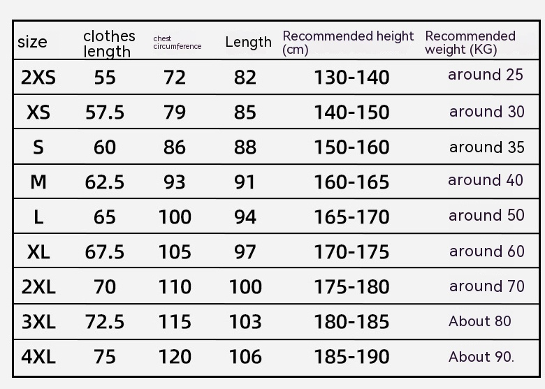 Size: XXS,XS,S,M,L,XL,XXL,XXXL,4XL