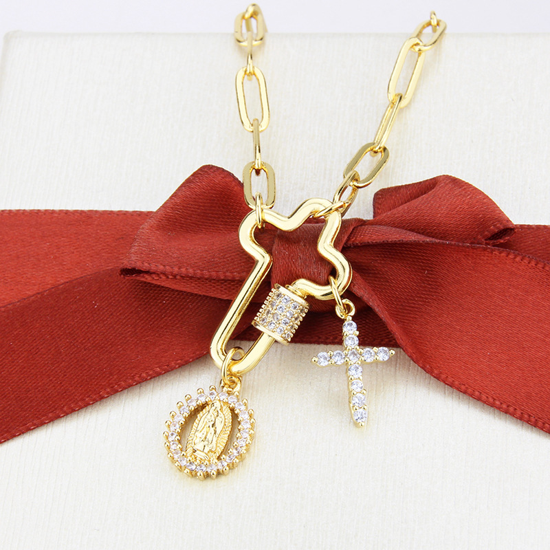 Product information:Style: simpleMaterial: CopperTreatment process: electroplating + diamond settingType: NecklaceStyle: UnisexStyle: CrossColor: gold-platedPackage:Copper necklace X1
