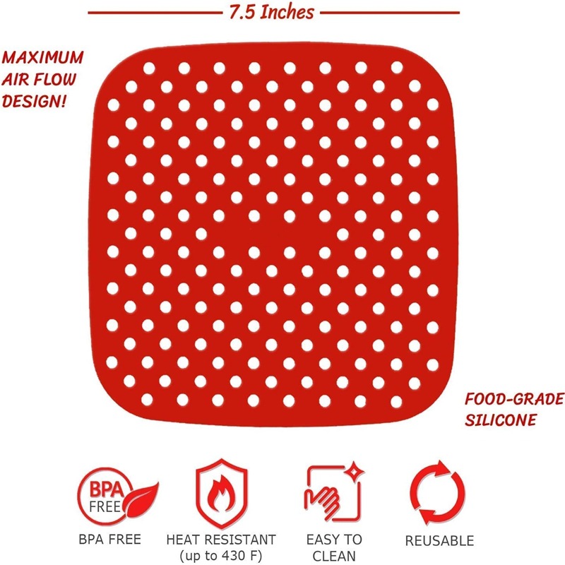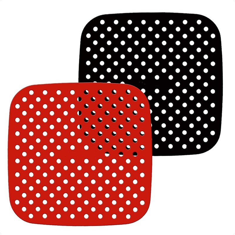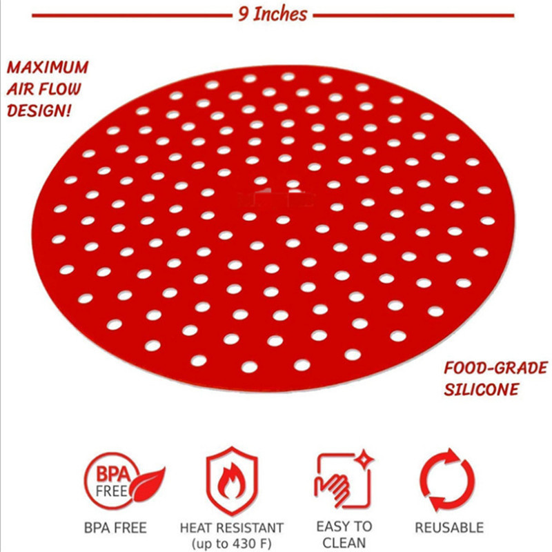 Color: black, redStyle: 9 inch-round, 8.5 inch-square, 8 inch-round, 7.5 inch-squareMaterial: Food grade silicone (can pass FDA)Features: resistant to high temperature of 260 degrees, can be fried repeatedly