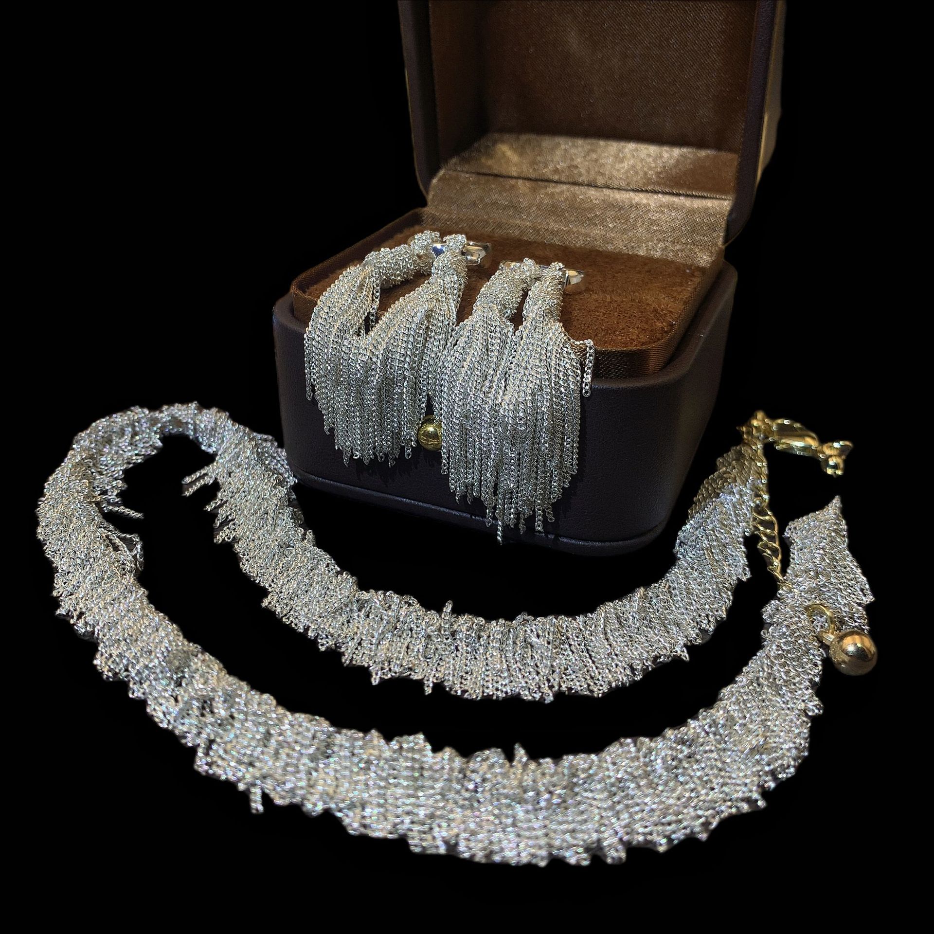 Product information:Treatment Process: Electroplating Color: length 5.1 * 2.5cm (weight 16.3g)-M5E1281 * Earrings, length 40 ~ 50CM (weight 25g)-M6N1282 * Necklace Material: Alloy Shape: Geometry