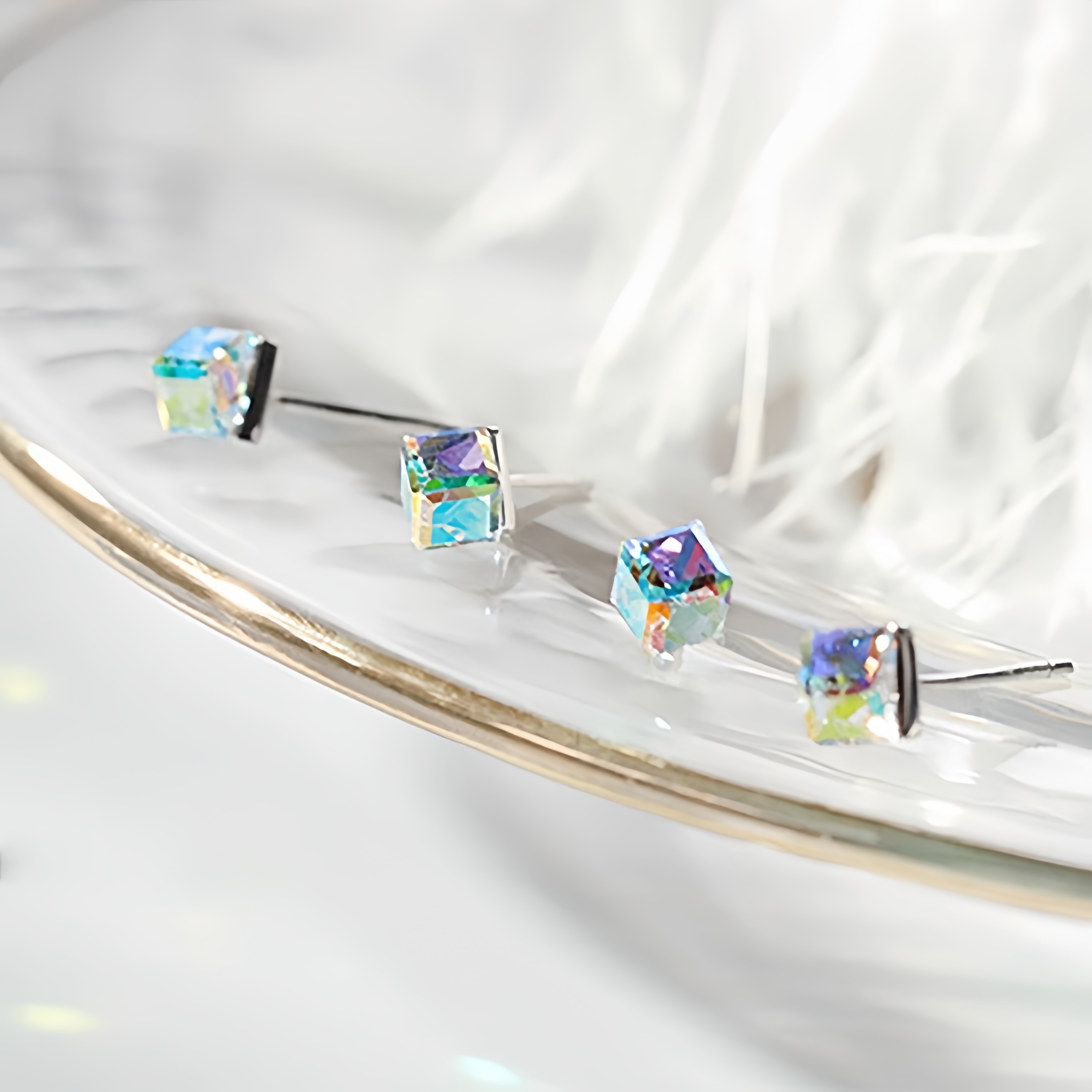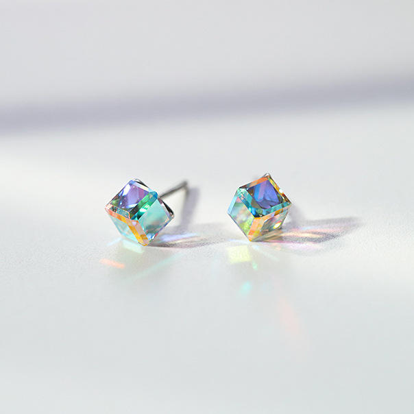 Sterling Silver Aurora Borealis Cube Stud Earrings