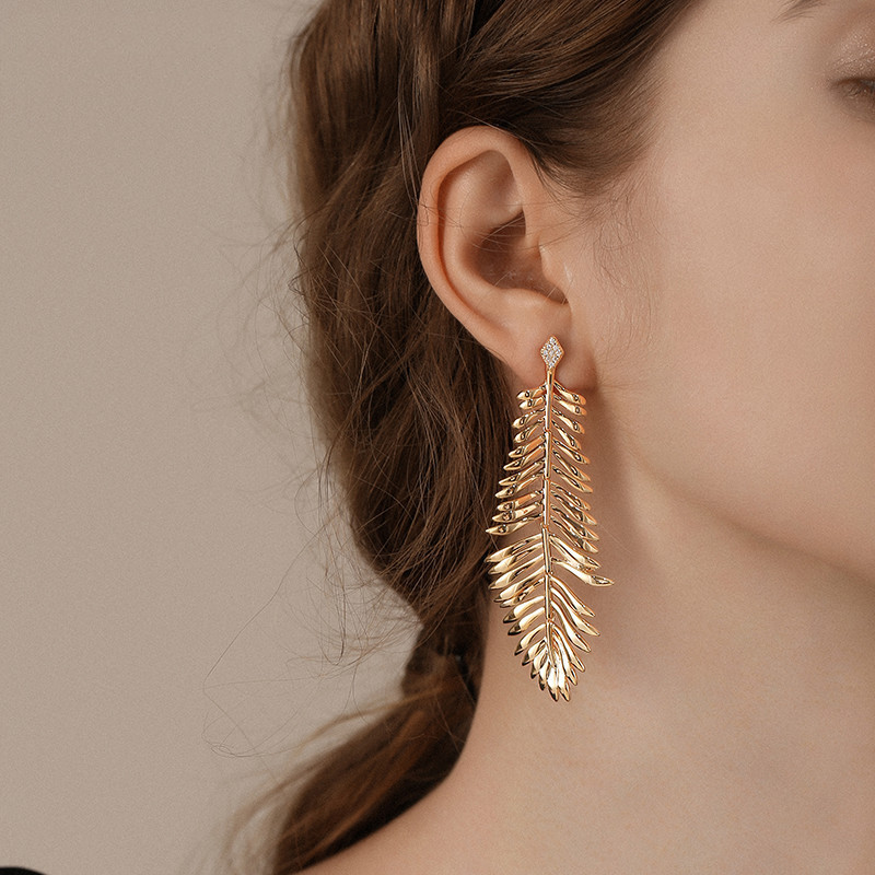 Name: 925 Silver Needle Fashion Long Leaf Earrings