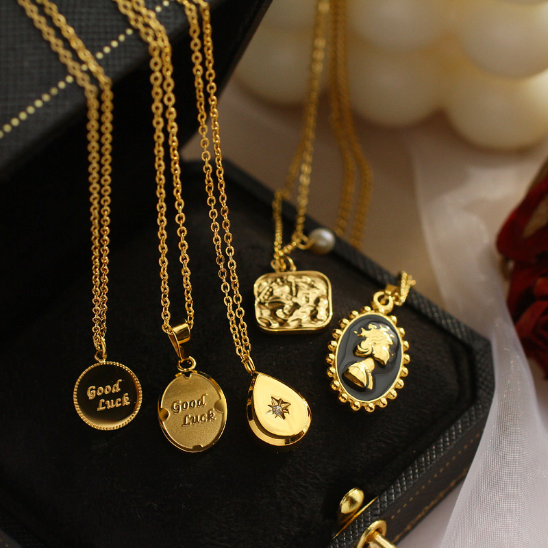 Material: titanium steel natural freshwater pearlSize: Small circle 1cm, oval 1*1.3cm, water drop 1*1.2cm, square sign 1.2*1.2cm, beauty portrait 1.7*1.2cmNecklace length: about 44cm