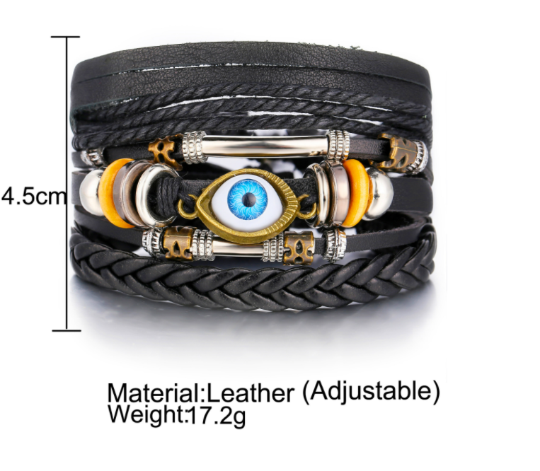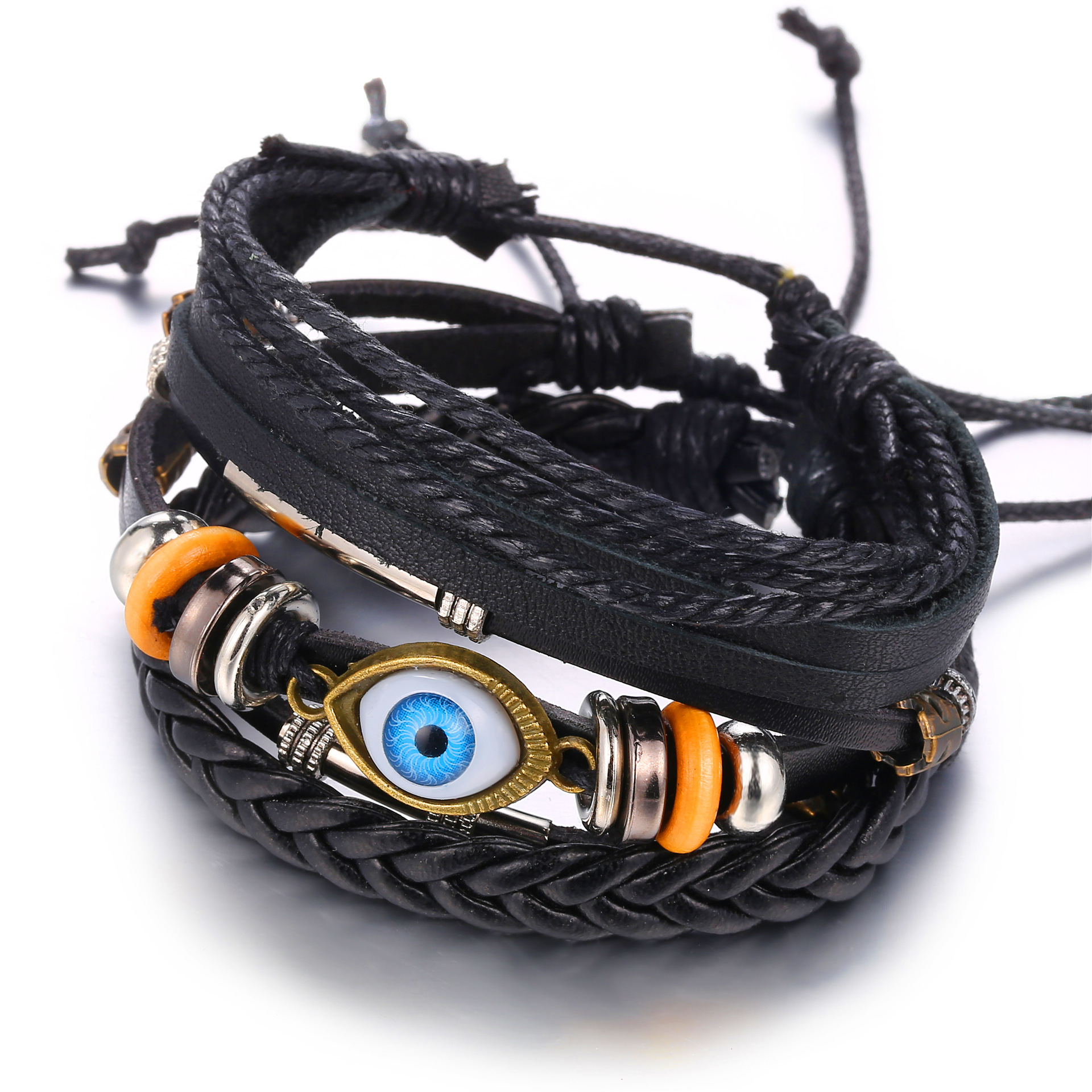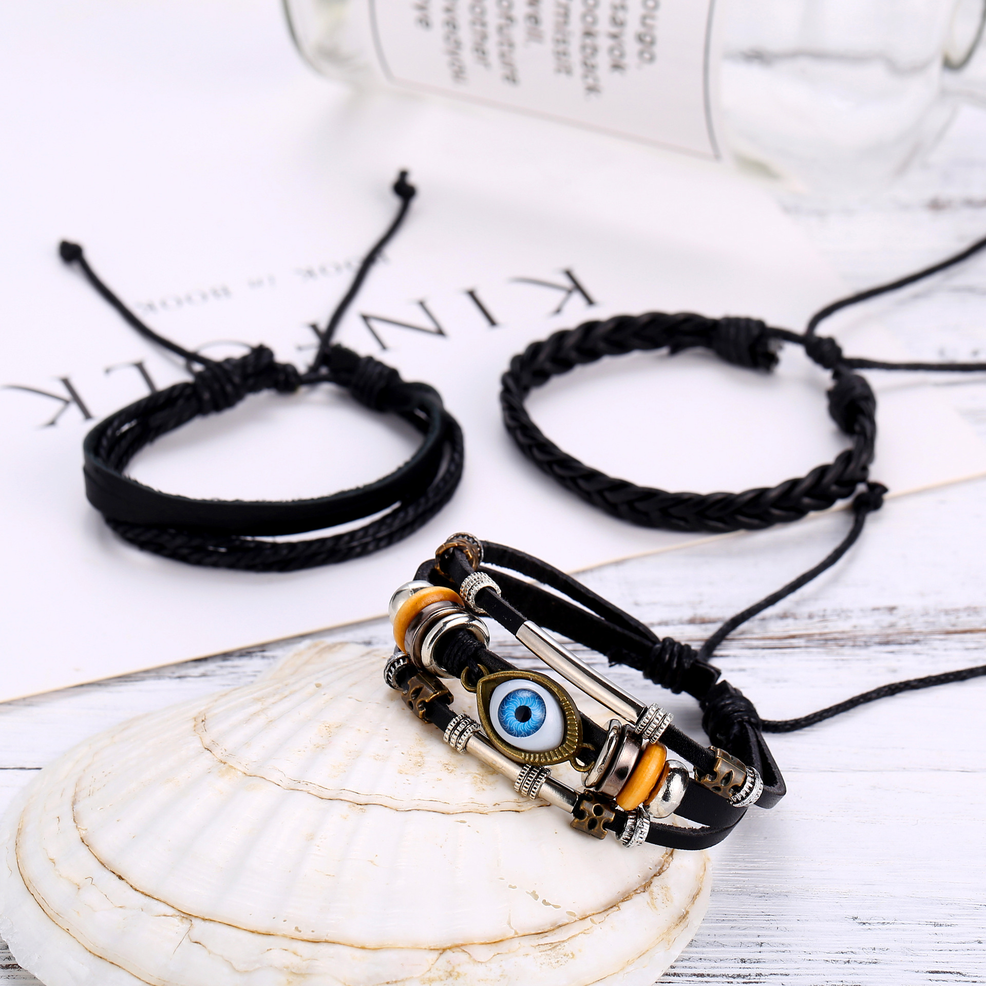 Creative Eye Woven Leather Bracelet Set Three-piece