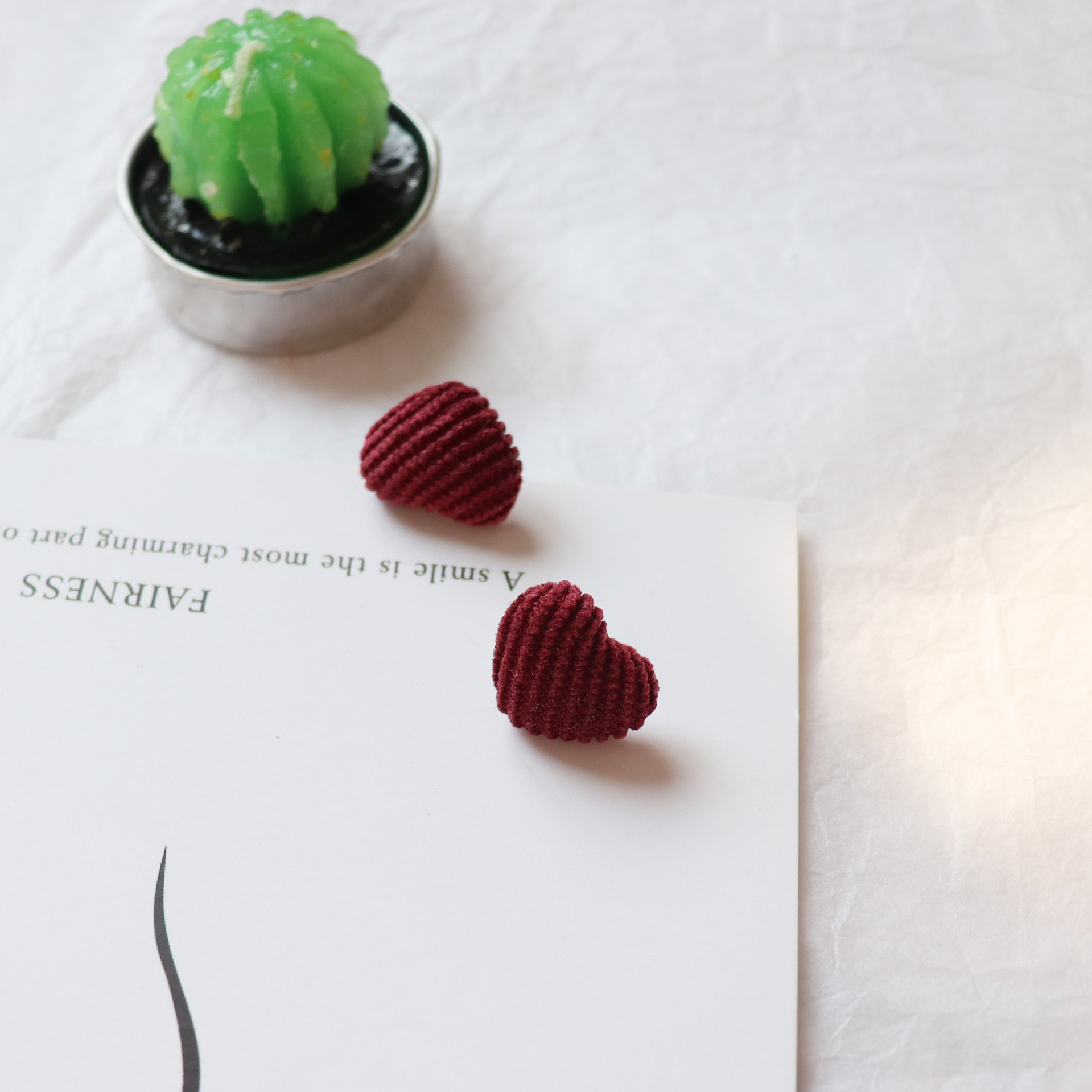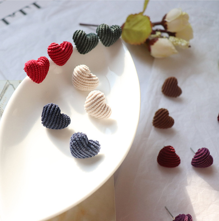 Product information:Color: purple, beige, dark blue, Korean red, Korean green, light coffee, Burgundy, Korean yellow Applicable population: Female Material: flocking Shape: heart shape Type: earrings