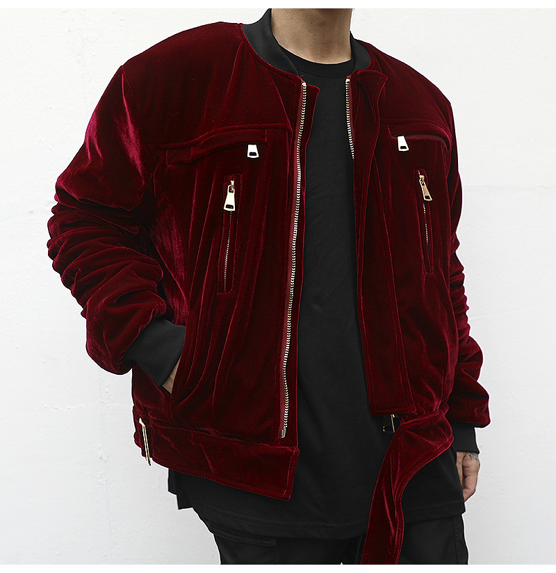 Custom golden zipper velvet fabric has a good textureThe design of the elastic machete sleeves is full of details on the upper body.