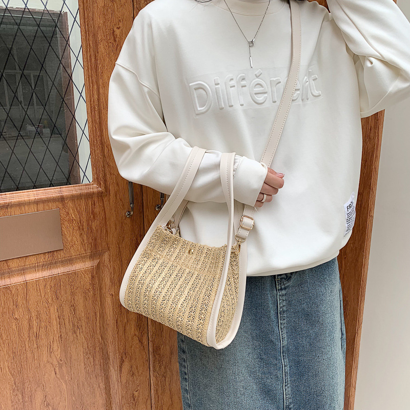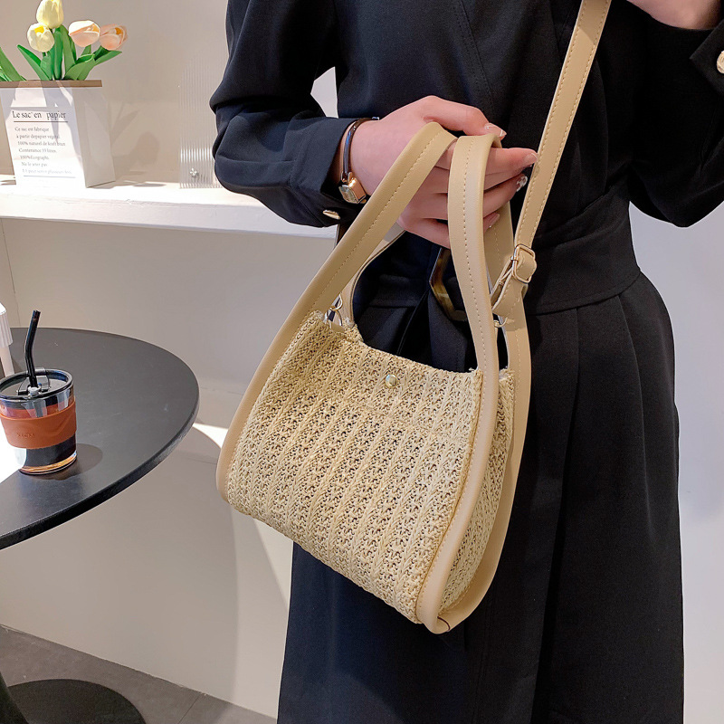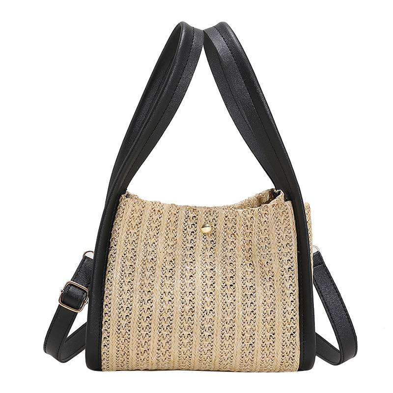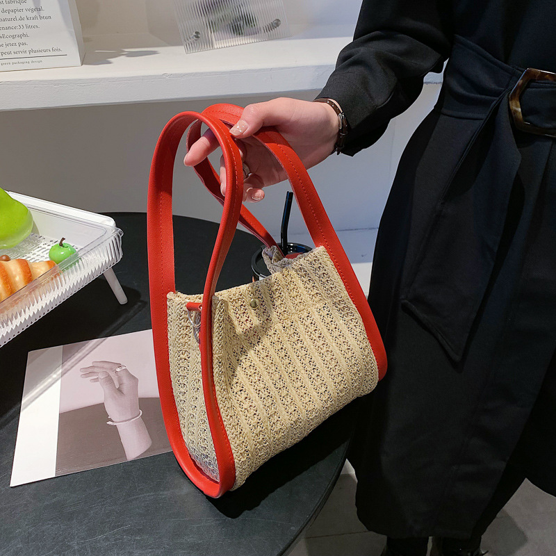 Specifications:Upper width: 22cmBottom width: 22cmHeight: 18cmThickness: 9cmHandle height: 19cmShoulder straps 20cmColors: White, red, khaki, blackStyle: Literary and artistic styleMaterial: Straw braidPacking list: