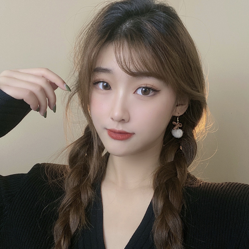 Style: Korean style/Korean styleStyle: Women'sModeling: GeometricPackaging: Individually packedInlay material: not inlayColor; a pair of hair ball ear hooks, a pair of ear clip hair balls