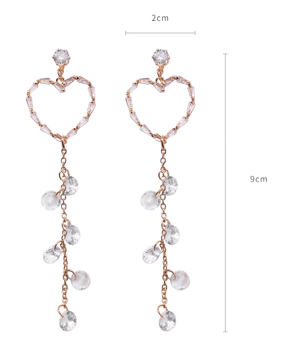 Zircon love tassel earrings super fairy retro temperament simple wild heart long earrings