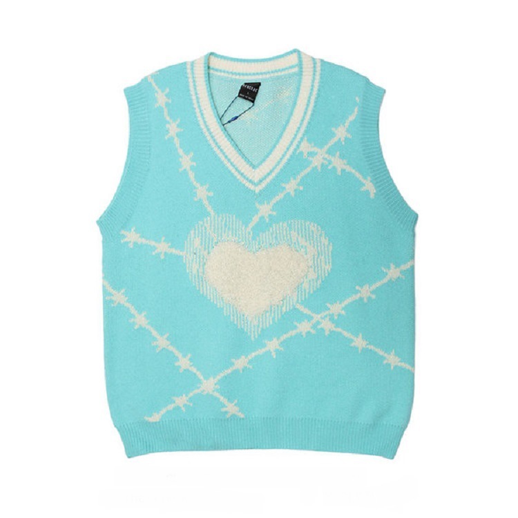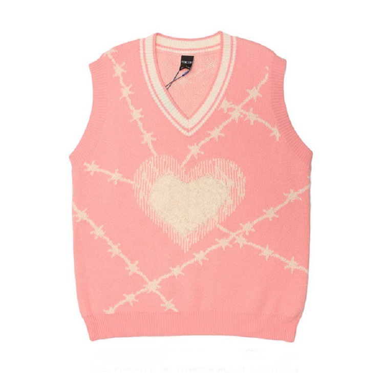 Product Details:Vest type: knitted vestStyle: HedgingCollar type: no collarNeckline shape: V-neckPattern: loveFabric name: acrylicColor: pink, blueSize Information: