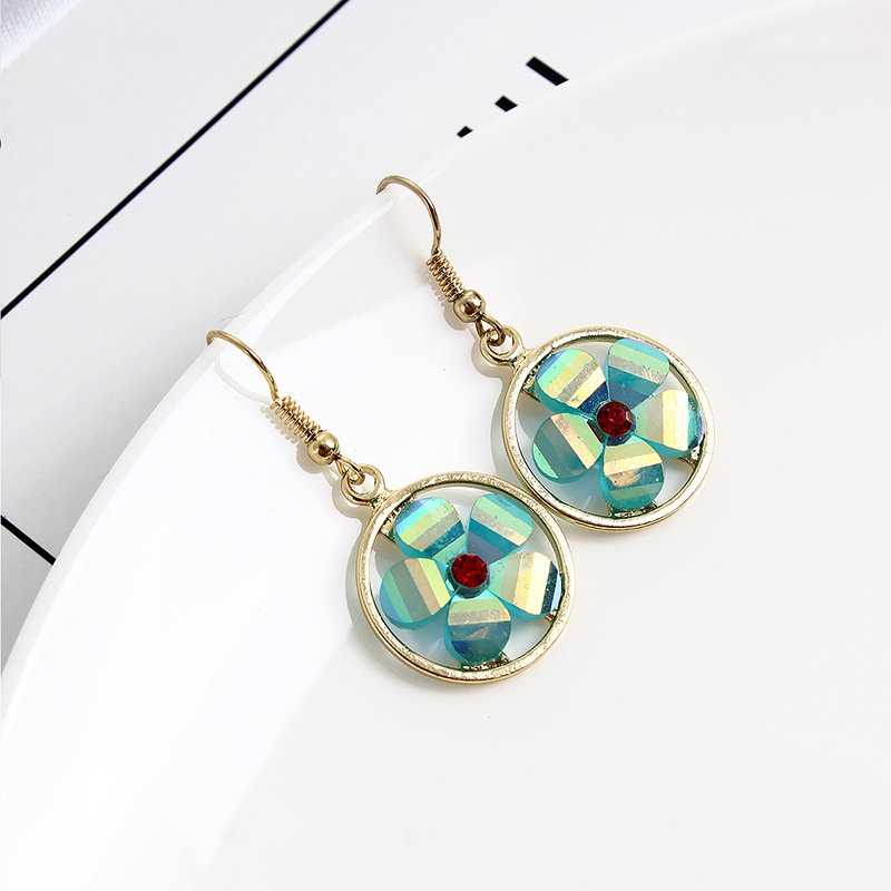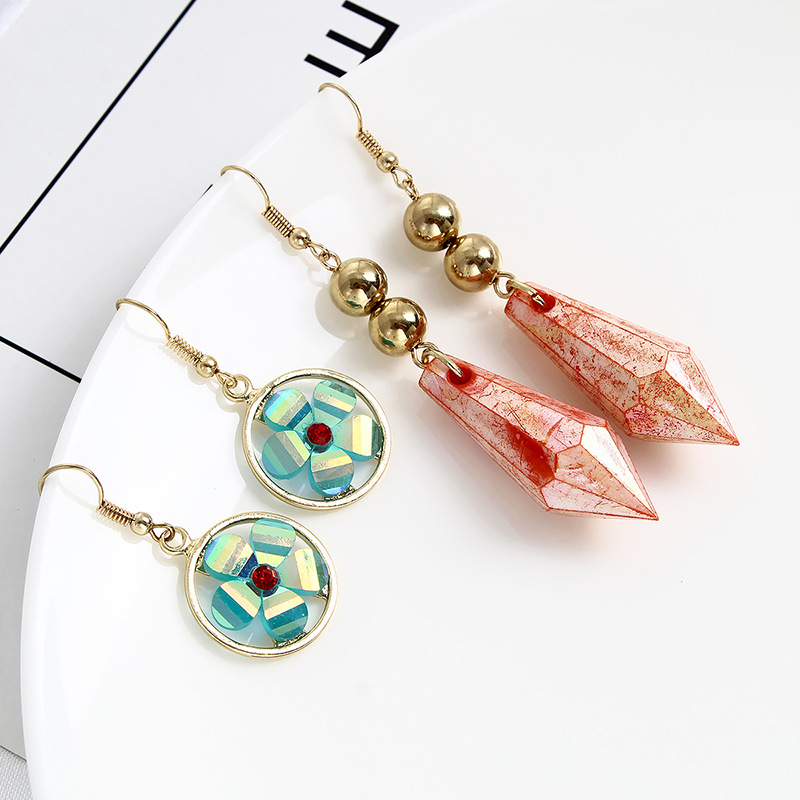 Product information:Material: plastic/resinType: Ear hookStyle: FlowersColor: Bloody Hexagonal Prism, Cyan Flower Earrings, Cyan Flower NecklacePopular elements: flowers, geometryPackage:Earring X1