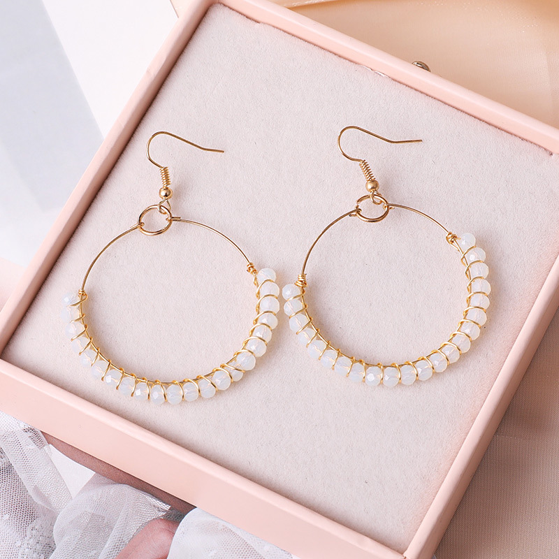 Product information:Color: gray E0328, red E0349, transparent E0364, Green E0370, beige E0375, light blue E0401, sky blue pair, Black Picture: earrings Material: Glass