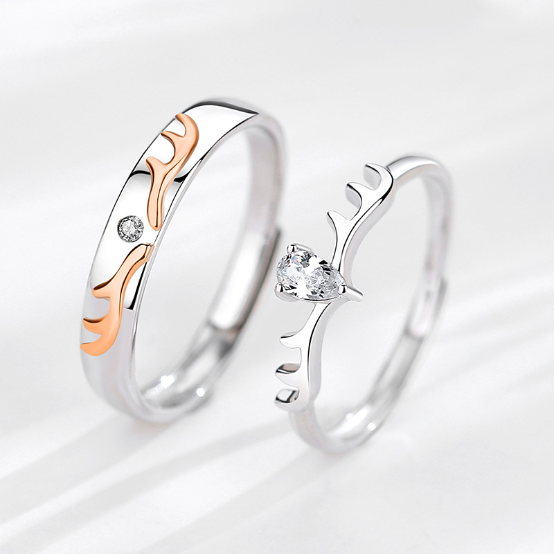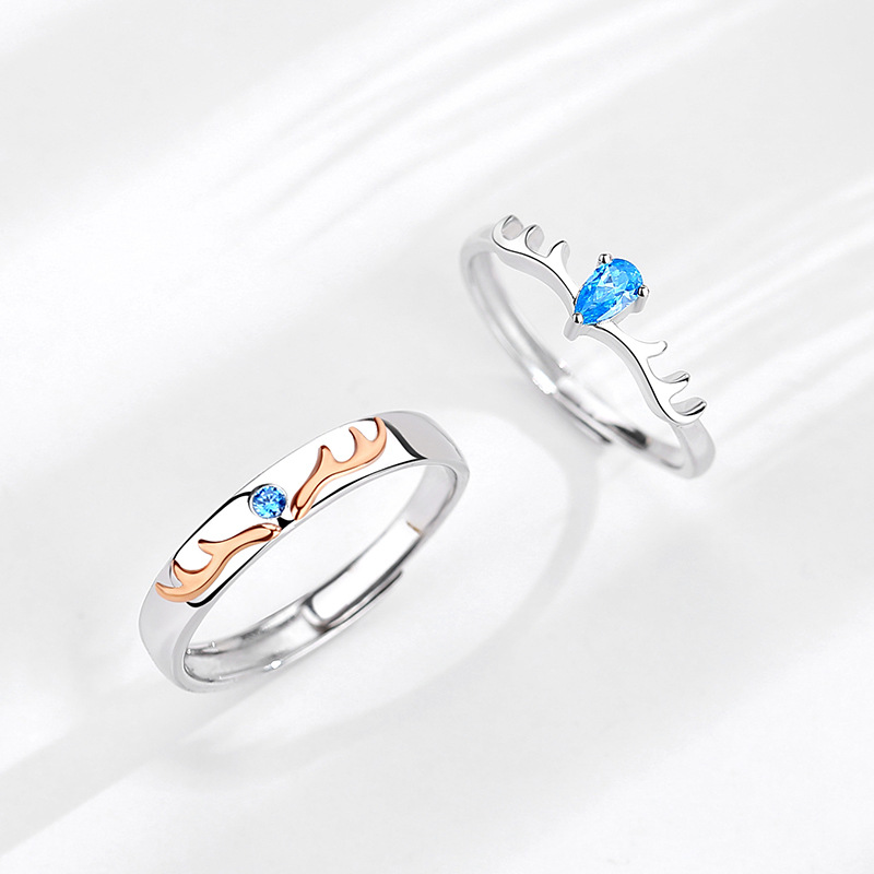 Color: female ring white stone, male ring white stone, female ring blue stone, male ring blue stone