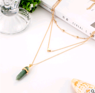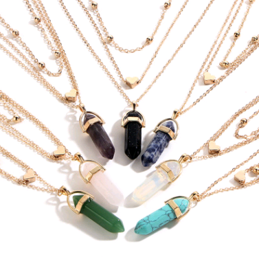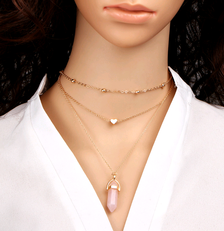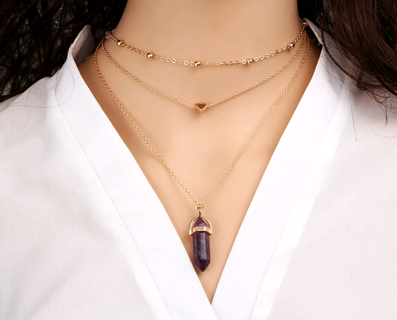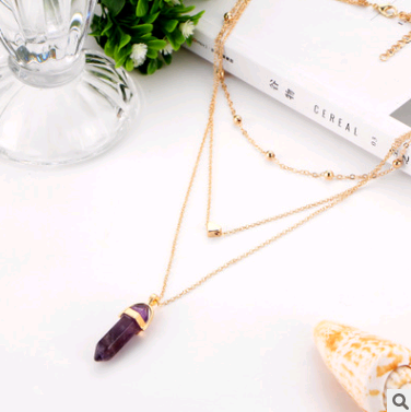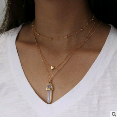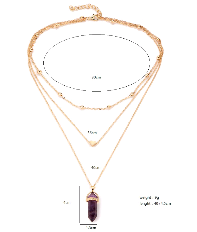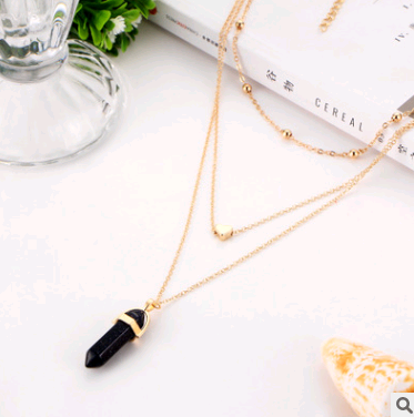 Hexagonal diamond gemstone natural stone heart love copper bead chain multi-layer necklace