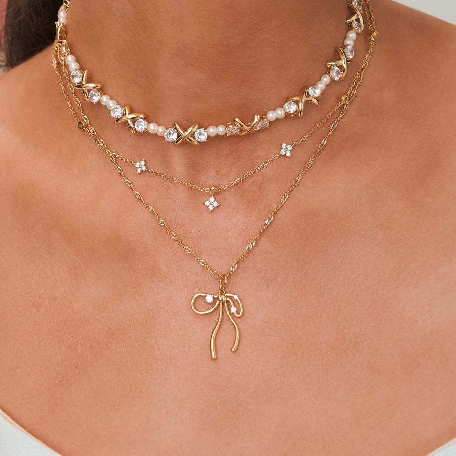 Color: gold necklace, silver necklace, a pair of gold earrings, a pair of silver earrings