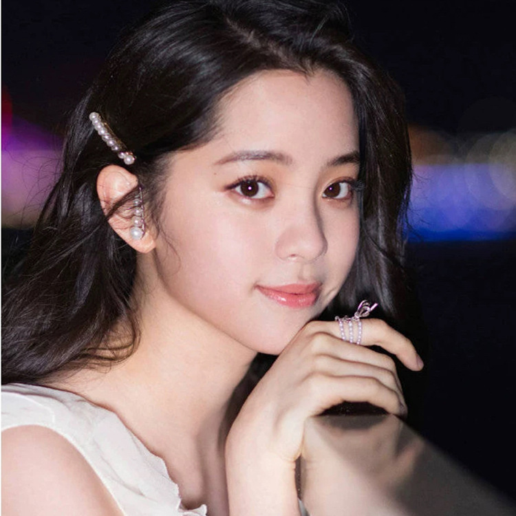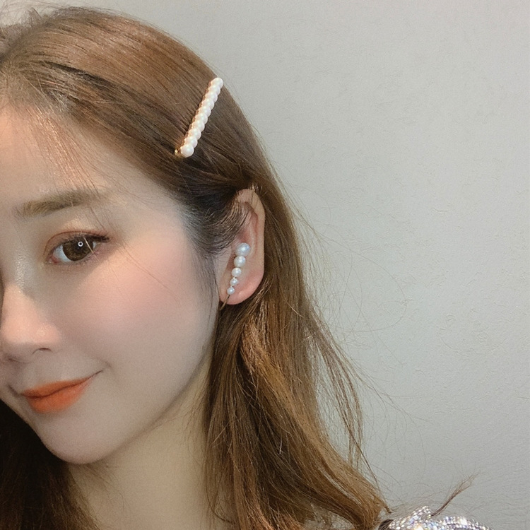 Ouyang Nana with web celebrity temperament pearl all-match hair clip a word clip hair ornaments small design U-shaped ear hanging female
